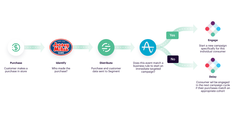 With their new growth stack, the Jersey Mike’s team can set rules and workflows to engage customers with individualized marketing messages and offers based on specific actions, such as after a user makes an in-store purchase.